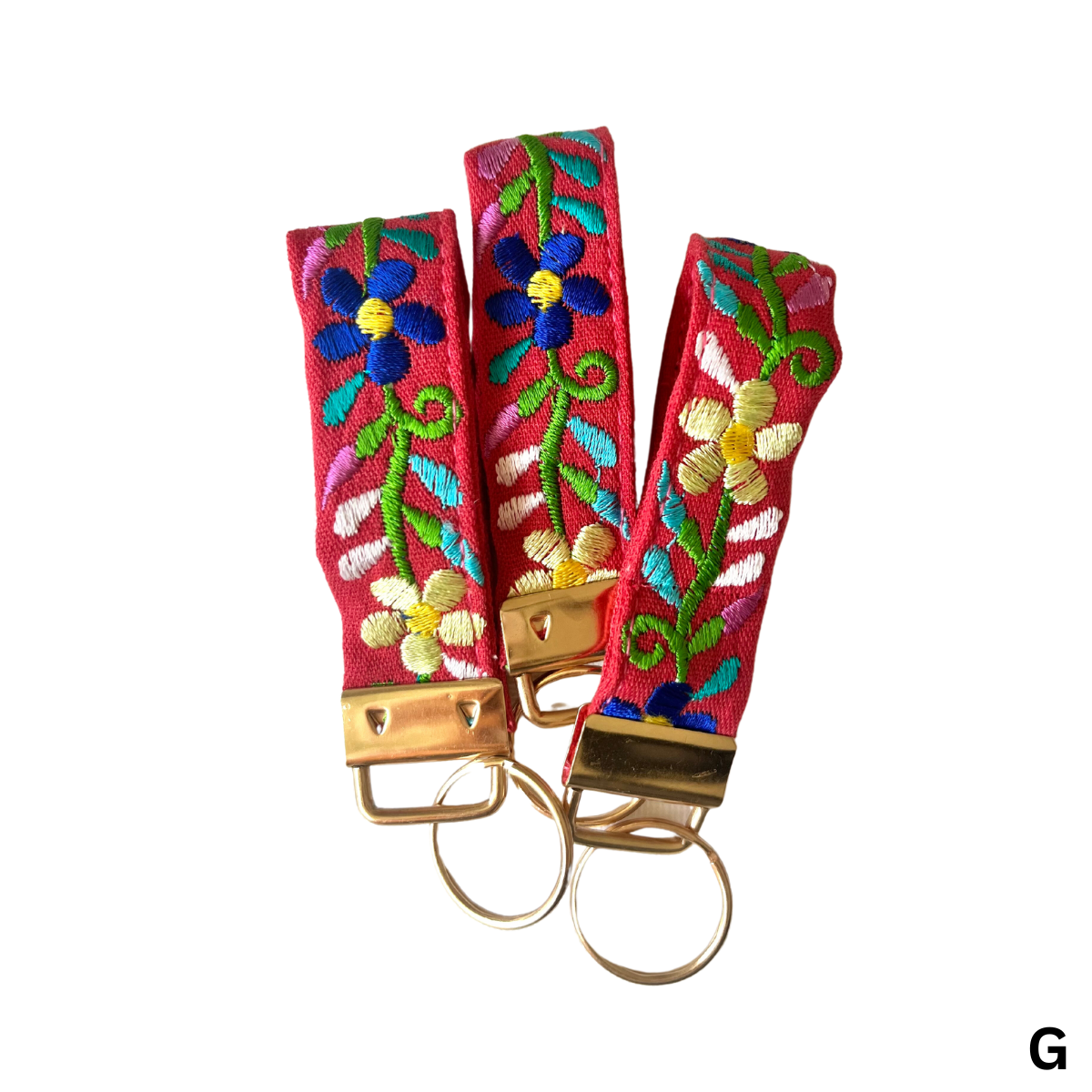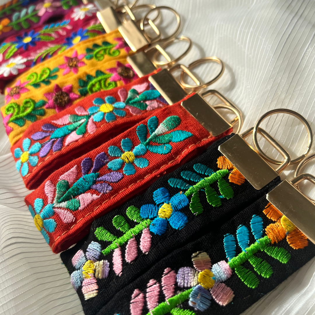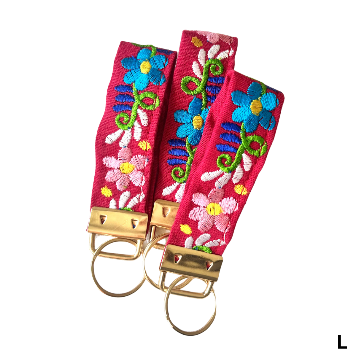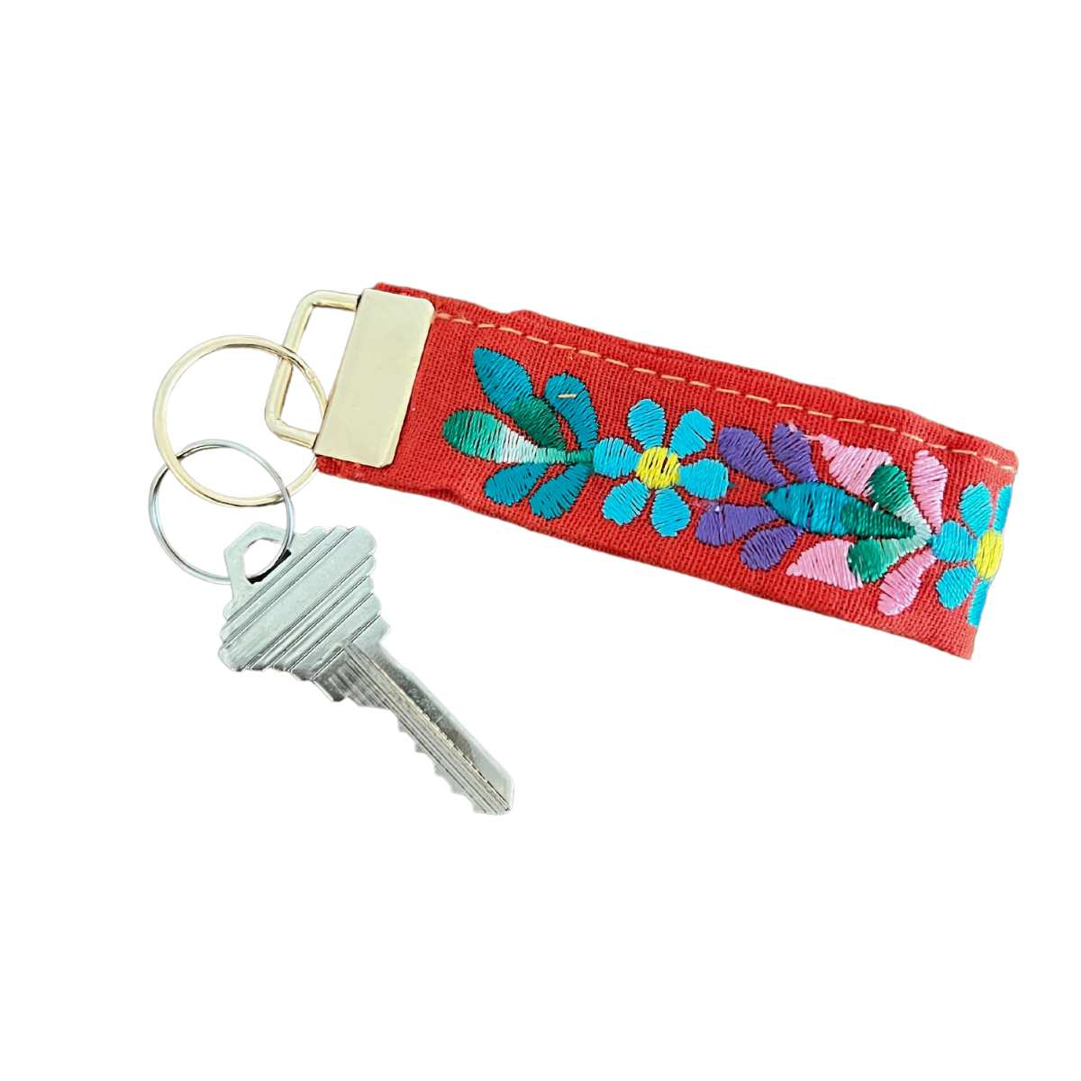 Beautiful embroidered designs on mini keychains. Easily attaches to keys. Bright colors make it easy to spot keys. Made in Mexico.