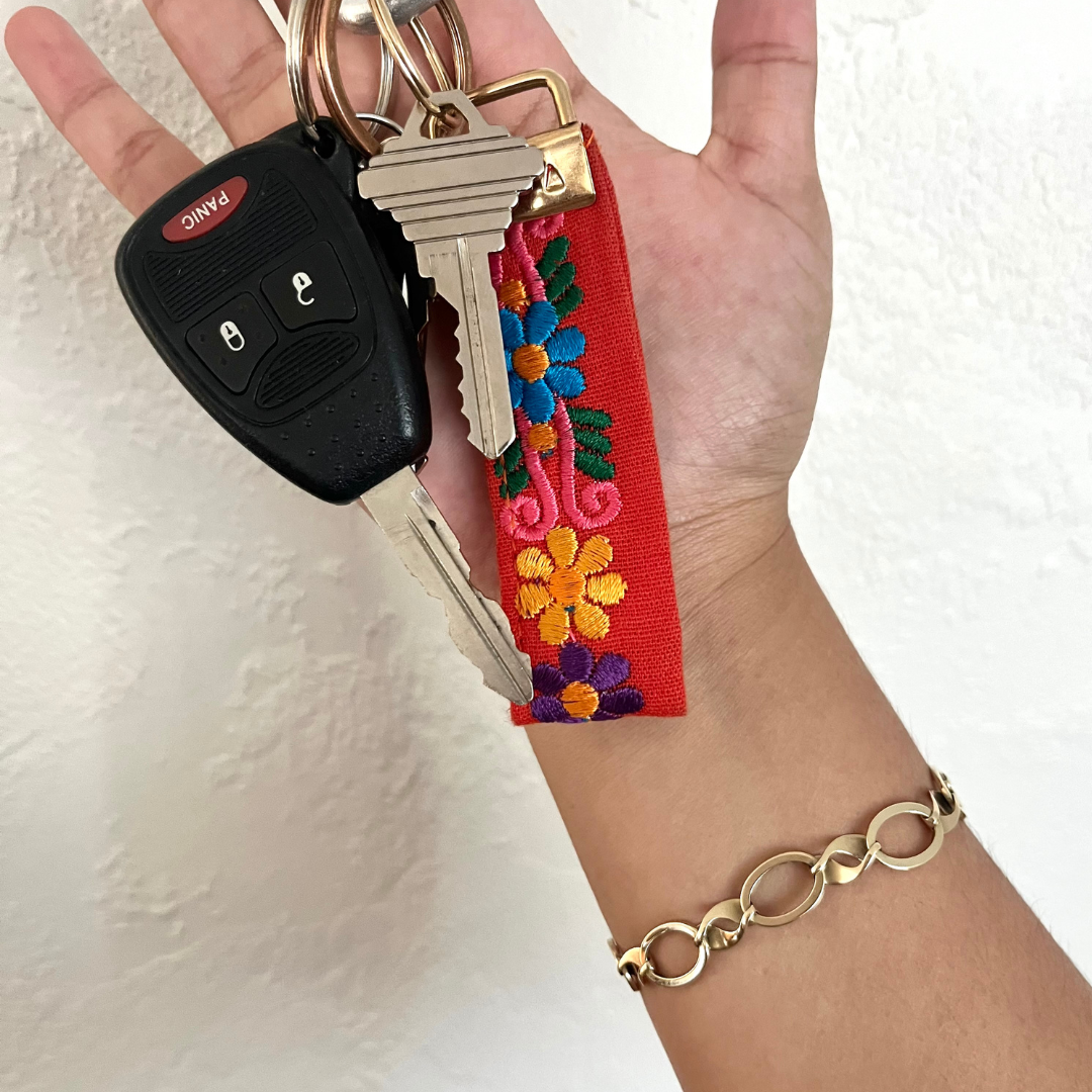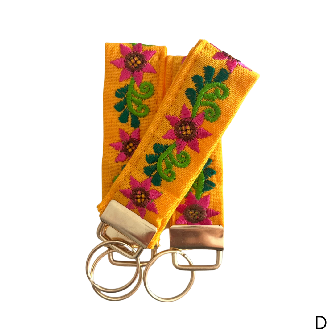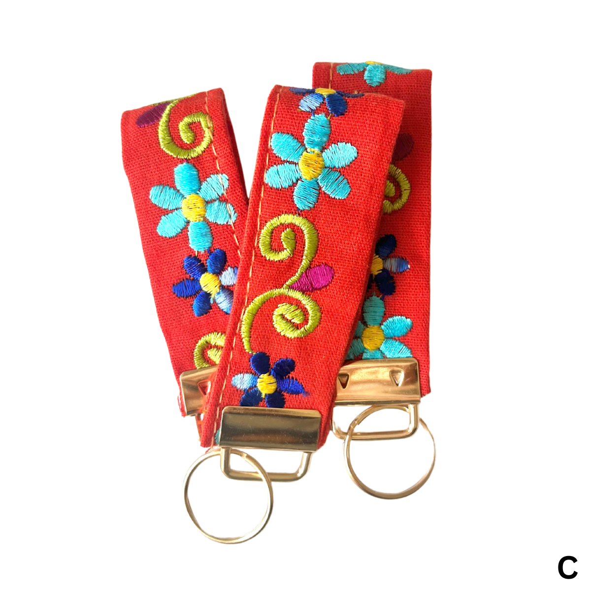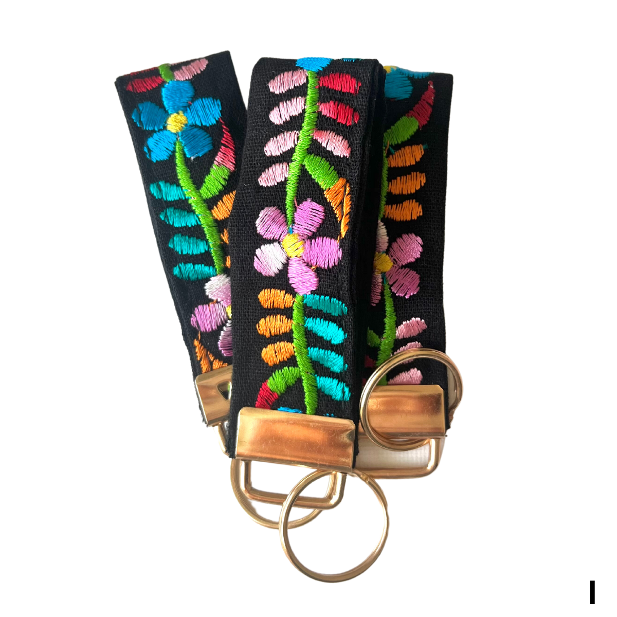 Beautiful embroidered designs on mini keychains. Easily attaches to keys. Bright colors make it easy to spot keys. Made in Mexico.